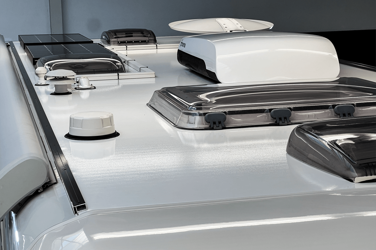 Bei uns werden Wohnmobildächer und Anbauteile von Hand gereinigt, gründlich entfettet und anschließend sorgfältig versiegelt – soweit dies baulich möglich ist. Dabei legen wir besonderen Wert auf eine schonende, aber effektive Vorbehandlung, damit die Keramikbeschichtung auch haften kann.